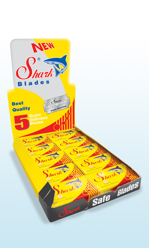 “SHARK” Double Edge Blades S. Stainless 5's, DIS. CARD 100 BLADES, 100 DIS CARD (10000 BLADES) SH.02B